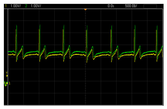 In case of ECG, we attach a bio-signal sensor patch immediately below the heart in the body. This test lasts for 32 s with 16,080 data points, where the maximum amplitude is ~2 mV, as shown in Figure 11.