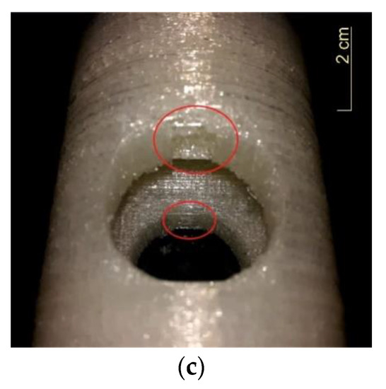 The research aim was to determine relations between the printing time, infill density, and material spent on printing. Figure 1a,b shows an example of the printed model parts with two infill densities. Figure 1c shows an example of printing when a design is not well adopted (software created the bridge to support the construction).