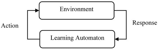 A field of AI called reinforcement learning focuses on designing ISs that are able to learn optimal policy for decision making in an unknown environments. Among reinforcement learning algorithms, Q-learning and learning automata are well-known. The main difference between these models is that Q-learning invests in the changes of the states in the environment of the learning system, but learning automata theory does not invest in the information of changes related to the environment. Therefore, in some problems reported in engineering and mathematics claiming that formalizing information about the environment is either expensive or impossible, the theory of learning automata can be suitable. In the rest of this section, the theory of learning automata and its applications are explained. In the theory of learning automaton (LA), an intelligent agent is able to make a decision with a self-adaptive manner decision making model [51]. The learning process of this model is made through repeated interactions with a random environment (Figure 1). In the theory of learning automata, the learning automata can be classified into two classes: fixed and variable structure [52]. A variable structure LA can be represented by a triple where is the set of feedbacks of the environment, is the set of actions, and L is the learning algorithm. Let and denote the action selected by LA and the probability vector defined over the action set at instant k, respectively.