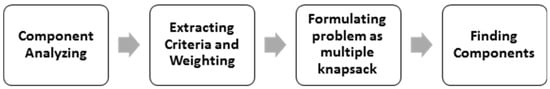 - Mancebo, E.; Andrews, A. A strategy for selecting multiple components. In Proceedings of the 2005 ACM Symposium on Applied Computing, Santa Fe, NM, USA, 13–17 March 2005; pp. 1505–1510. [Google Scholar]