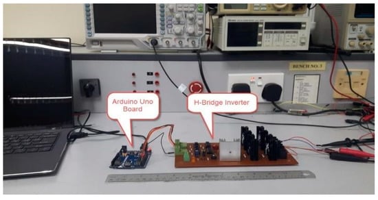 The hardware setup of a proposed H-Bridge inverter circuit.
