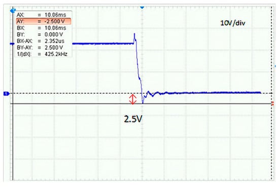 Figure 13 shows the negative spike at VS pin in a conventional gate drive circuit before using the proposed design. It can be seen that the voltage of the negative spike at V-Spike is 2.5 V.