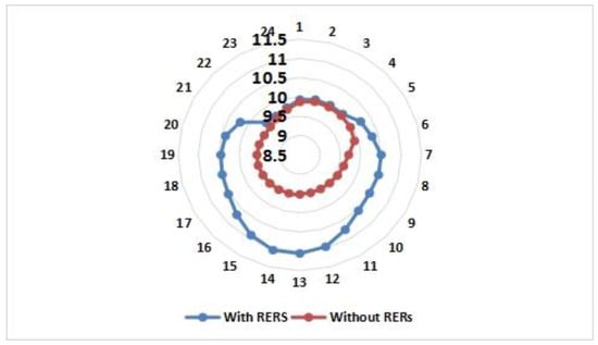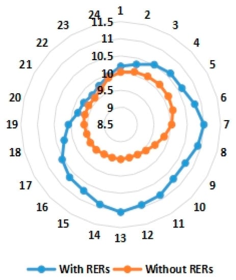 RERs subscript denotes the inclusion of RERs to the system, while the Base subscript denotes the base case or without the RERs. The selected values of the , , and are 0.5, 0.25, and 0.25, respectively [35].