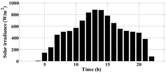 where denotes the solar irradiance; represents the standard environment solar irradiance, which equals 1000 W/m2; denotes a certain irradiance point, which equals 120.