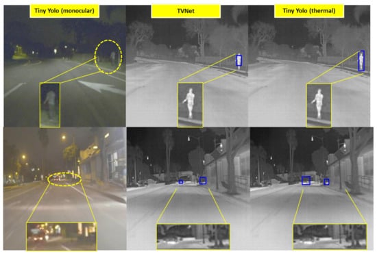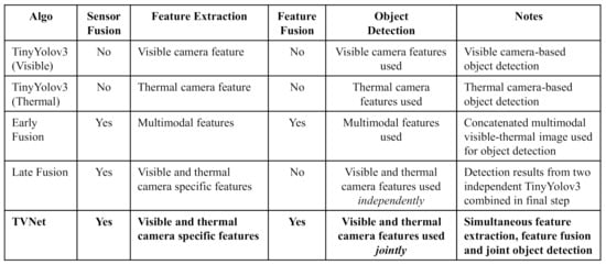 Sensor Fusion: The advantages of feature level fusion are evident in Table 4, the TVNet reports better performance than the Tiny YOLO-based visible-alone and thermal-alone models.