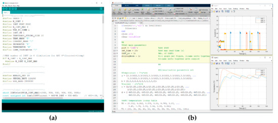 The human-machine interface of the test setup: (a) Arduino; (b) MATLAB.