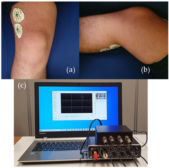 A few systems based on bioimpedance measurements for determining the progress of osteoarthritis are reported in the scientific literature [16,17]. Acute injury characterized by edema can also be identified [18,19], and a wearable vector electrical bioimpedance system to assess knee joint health has been proposed [20], employing an MP150 data acquisition system for data recording [21].