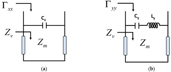 Equivalent circuit model for the Artificial Impedance Surface towards (a) x-direction and (b) y-direction.
