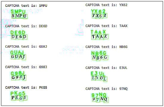By performing inference on the testing datasets, the results are shown in Table 2. We observed that, all the models obtained accuracies of more than 90% on the testing dataset. However, in terms of the breaking time, our proposed model is simple, flexible, efficient, and used lesser time to break the text-based CAPTCHAs as compared with the fine-tuned CNN models. Examples of text-based CAPTCHA breaking by our proposed model are shown in Figure 16. The limitation of our proposed CAPTCHA breaking model is that it performs better on CAPTCHA images with rotated, overlapping characters, and with a white background. It has not been tested on CAPTCHA images with distortion, strikethrough, and with a complex noisy background.