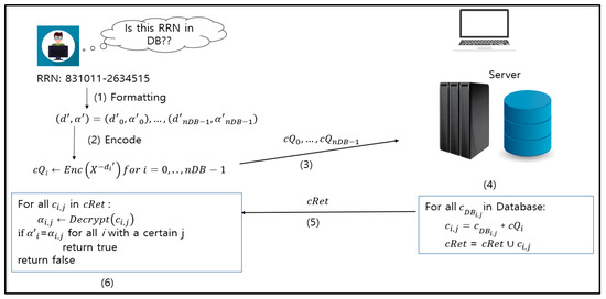 To solve these problems, technical methods for preserving the privacy of personal sensitive information, such as RRN, are being studied along with the improvement of the system for strengthening the management and supervision of personal information holders [5]. Homomorphic encryption (HE) is one of the methods considered [6,7,8,9,10,11,12,13,14,15,16,17].