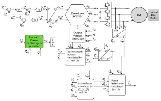 Consequently, the stator inductor identification method based on a low-speed test can be modified by considering the locked-rotor standstill condition, as shown in Figure 6, because it is based on the modified inductance estimation equation and the proposed current injection speed generator. This modified low-speed AC injection method is more suitable for three-level NPC inverter-fed IMs than the previous method since it can identify the stator inductance not only under locked-rotor standstill conditions, but also under almost any load conditions.