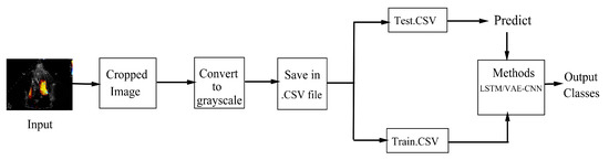 An overall flowchart depicting the working methodologies is shown in Figure 2. Our scheme starts with taking an input image (frame in case of video), which is then cropped and converted into gray scale for 2D classification of images and videos. This conversion is important as grayscale images are more detailed and give a better representation of the image. It is then passed for filtering using the Gaussian filter as in [20]. It was done to remove noise, and unwanted data and Gaussian filter give a comparatively better result. Few images having a mixture of two or more abnormalities were augmented so as to obtain 10 number of patient data for experimental purpose in the case of video classification of 6 classes. Augmentation using cropping has been done.