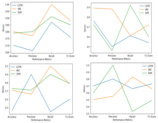 Based on the statistical test in Table 3, the result obtained by both deep learning methodologies dominates that of SVM. It is done by considering the value of 0.05. From the total 8 cases, 6 cases show statistically significant improvement compared to SVM. In all cases LSTM and VAE-CNN obtained statistical significance improvement over SVM, though in some cases there is not much significance. Only in 1 case of VAE-CNN and 1 case of LSTM, there was no improvement at all. Using the obtained data, the deep learning methodologies are more effective based on the value of the paired T-test. Based on the test of the three methodologies, a difference is observed between the group and therefore is statistically significant.