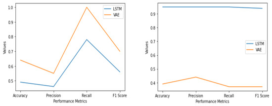Accuracy and Loss for LSTM and VAE-CNN for two-class classification for training and validation phase respectively.