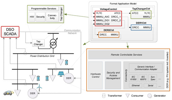 In recent years, the electric power grid had to face enormous challenges on the way to a more environmentally friendly infrastructure, supporting decarbonisation and higher shares of renewables. This is a world-wide political goal; for example, in the year 2009, the European Union defined a set of target values for the energy industries, commonly known as 20-20-20 goals [1]. The objective was to reduce the emission of greenhouse gases, increase the share of renewable energy sources and improve energy efficiency by 20% each by the end of 2020. Renewables for power generation include technologies, like photovoltaics (PV) and wind energy plants. Since these technologies are very volatile and can only be predicted to limited extent, grid control becomes significantly more laborious and complex. Especially for PV, the use of small roof-top generation sites is very common nowadays; thus, they are feeding electricity into low voltage (LV) grids. This causes severe stability problems for LV grids, as they are massively distributed, i.e., control applications are needed for the coordination of a large number of participating nodes using respective communication means [2]. Furthermore, system maintenance (e.g., in case of security audits, technical updates, functional outages) and the need for adaptation to changing and locally different regulatory and legal conditions result in additional effort. Semi-automatic management, which can be done remotely, may alleviate the required amount of effort significantly.