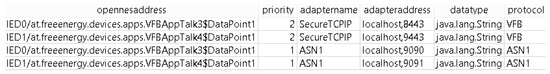 If the connectivity module establishes a connection, some mapping needs to take place to check if there is already an open channel for that particular communication partner to continue communicating on that channel. This is handled via a simple lookup-table. When reconnecting on the other hand, an adapter and a protocol need to be chosen; this is done by translating the system address into an adapter address. Finally, it is possible to execute protocol specific tasks to prepare the open channel for communication. This is achieved by the respective protocol adapters. When receiving new connections, the adapter and the protocol need to be pre-defined because an incoming request is handled by the particular server implementation of the adapter. Thus, an incoming message needs to be verified (if applicable) and forwarded to the VFB.