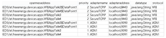 Here, the most important interfaces between the various components internal to the IED are considered. Internal in this case refers to the fact that under normal circumstances, they will not be particularly relevant to any third parties implementing software components or adapters for the connectivity module. The internal interfaces are accessed by the VFB only, i.e., they connect the VFB to a functional module. The interface between the VFB and the security module (interface 5 in Figure 6) can essentially be limited to a single function call: For any message arriving via the connectivity module, the VFB must query the security module (which in turn must query the local database and/or a central permission store, such as an LDAP server), for existence of the appropriate permission. If a corresponding entry is found, true should be returned and the message can be passed on by the VFB. Otherwise, the message has to be discarded by the VFB.