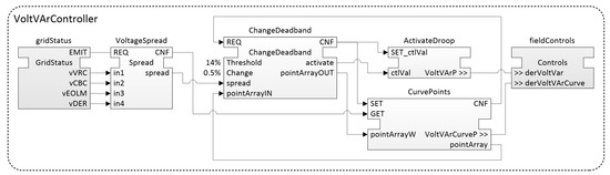 Energy services can then be utilised to engineer higher order applications, as for instance Volt/var control in LV grids (see Section 6). To enable engineering in an easy to use way, as well as for allowing reuse of existing functionalities, a model-driven architecture (MDA)-based approach has been chosen, as given in Reference [7]. According to MDA, the platform independent model (PIM) is created using a domain specific language (DSL), here called the power system automation language (PSAL). PSAL is intended as a tool for SGAM compatible use case design and at the same time it provides a basis for further code generation. Thus, PSAL is also the starting point for all design activities in the provided engineering methodology. As an example, in Reference [7], IEC 61499 function block (FBs) are used to realise a Volt/var control application, engineered with the help of PSAL.