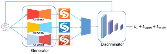 - Isola, P.; Zhu, J.Y.; Zhou, T.; Efros, A.A. Image-to-image translation with conditional adversarial networks. In Proceedings of the IEEE Conference on Computer Vision and Pattern Recognition, Honolulu, HI, USA, 21–26 July 2017; pp. 1125–1134. [Google Scholar]