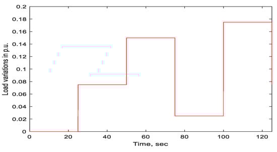 The most promising RESs are the solar and wind power generations are due to the available resources, lower cost of power generation, and maximum power point tracking capability over a wide range of wind and sunlight variation [,]. The inherent volatility and uncertainty characteristics with these resources, these sources are generally connected via power electronics-based inverter/converters to the power network. Their interaction with the grid is substantially different from that of the conventional synchronous generator (SG)-based plants that use steam and hydro turbines. While intrinsic kinetic energy in the SG rotor inherently provides inertia to the system, this is not the case for the RES connected via power electronics converters. Consequently, during disturbances and supply/demand imbalances, the inertia, which slows down the natural reaction of the system and provides time for the responsible controllers to take actions, is significantly reduced because the rate of change of frequency (RoCoF) is much higher in systems with low inertia []. This high level of RoCoF and large frequency deviation (Δf) can provoke the tripping of sensible loads, generating units and relays, thus affecting system frequency stability even at small load-generation mismatch [,]. Although the variable wind turbines have inertia, they are effectively decoupled from the system due to the power electronics-based converter interface; thus, it cannot improve frequency response.