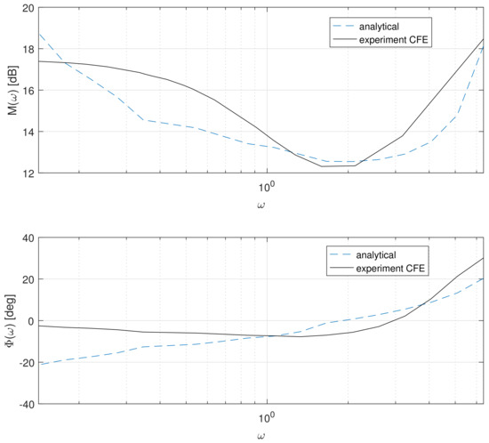 The CFE approximation was examined analogously. The Bode diagrams were tested using a sine wave with frequencies from range: 0.88–40.0 Hz. Parameters of the CFE approximation for are given in the Table 4.