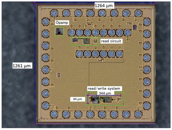 The integrated circuit was designed and fabricated in the 130 SG13S CMOS process by IHP and operates at a supply voltage. A photograph of the chip is shown in Figure 8.