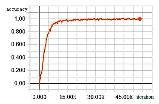 It can be seen from Figure 7 that the training of the neural network reached 98% accuracy after 30 k iterations.