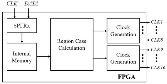 Block diagram of variable clock generation in a field programmable gate array (FPGA) board.