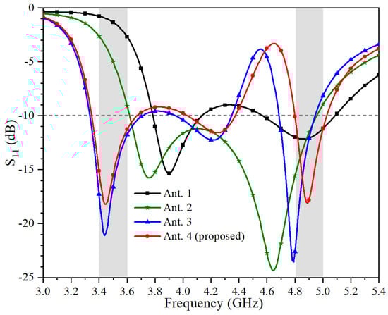 3.1. Analysis of the Design Evolution of the Proposed Antenna Element