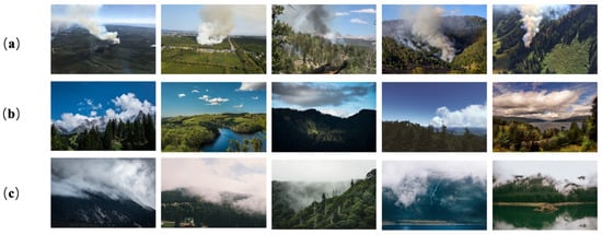 Smoke and interference images. (a) Smoke images, (b) cloud images, (c) fog images.