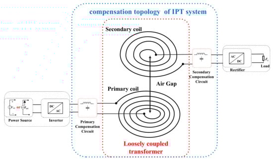 Figure 1 illustrates the schematic diagram of an IPT system. At the primary side, the IPT system is powered by a DC source UDC (IDC), and the inverter produces a constant AC voltage or current. At the secondary side, a rectifier is applied to generate a DC voltage to the load ZL. As shown in Figure 1, in order to transfer power within a certain distance in the IPT system, a loosely coupled transformer (LCT) that involves the primary coil and the secondary coil must be used. Due to the existence of the air gap between the coils, when the distance of the coils increases, the coupling coefficient between the coils becomes smaller while leakage inductance becomes bigger. Uncoupled magnetic flux generates significant reactive power, which increases the ratings of the drive circuit and reduces the power transfer capability [5]. Therefore, compensation circuits are generally required to achieve or improve the following characteristics: