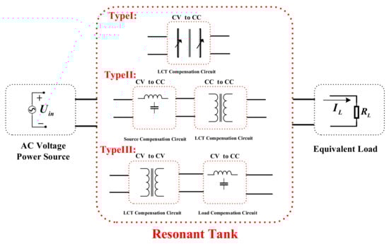 Take voltage-source driving to realize load-independent CC output as an example to illustrate the design method of this article. Combining with the model analysis in Section 3 and Section 4, there can be three types of design forms as shown in Figure 22.