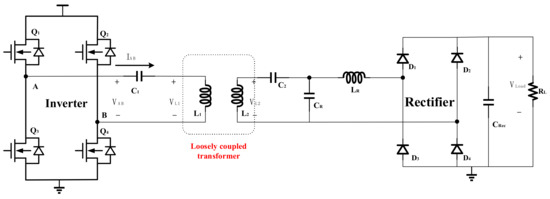 Compared to traditional plug-in systems, inductive wireless energy transmission systems have advantages such as flexibility, convenience, electrical isolation, and strong environmental adaptability [1]. It has been employed in many applications. For example, in the field of electric vehicles, the inductive power transfer (IPT) method has a greater advantage for the electric vehicle (EV) battery charger due to its convenience and safety as compared to the plugged-in charger [2]. In the area of implantable medical devices, compared to batteries, IPT can theoretically achieve an unlimited lifetime through wireless power transfer, without the need for surgery to replace the battery, greatly reducing the patient’s pain [3]. In the field of consumer electronics, inductively coupled chargers are becoming more and more popular in wireless charging of mobile phones, laptops, and other handheld devices as proposed in [4].