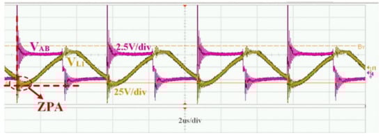Inverter output voltage VAB and transmitter coil voltage VL1 when ZPA.