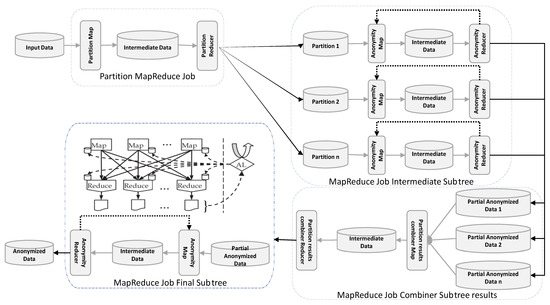 - MapReduce Job Combiner Subtree Result: In this phase, MapReduce jobs combine all intermediate anonymized results to form an intermediate anonymized dataset.