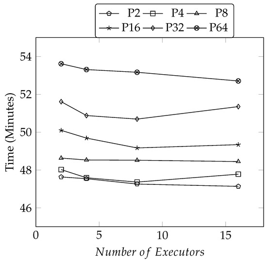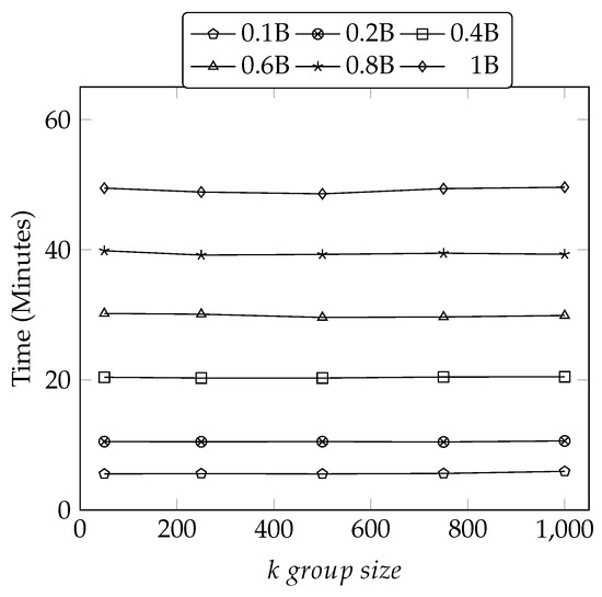 To put more formally, let n be the number of tuples and m be the number of attributes in a dataset D, and let s and t represent the number of mapper and reducers, respectively. Then, mapper produces key-value pairs which yields space and time complexity [38]. However, the reducer yields and for space and time complexities respectively, where k denotes a k group size. The increase in s causes fewer n, which reduces the computing time for the mapper process, and by increasing the number of mappers (s), we get better big complexity because is divided by the number of mappers [12,39].