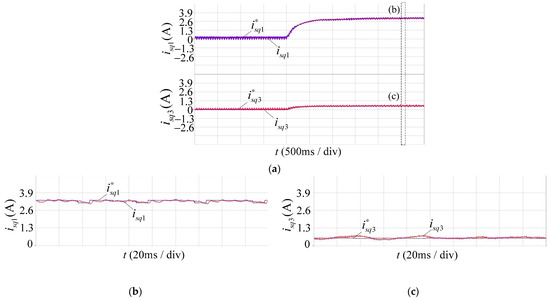 Figure 7 shows the waveforms of the speed n, fundamental plane q-axis current and third harmonic plane q-axis current when load disturbance occurred in the two control methods. Figure 8 shows the and tracking