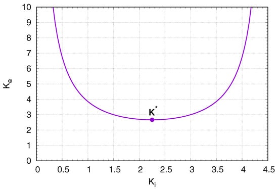 Among the possible constraints set by (16), the most convenient is represented by the point in Figure 2, placed at the minimum value of . Using (17) to find this minimum yields