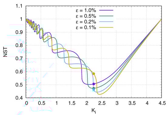 whose plot is reported in Figure 2. Observe that since the condition in (16) is independent of the , it represents a design criterion for the optimization of the dimensionless settling time, .