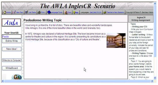 - Paredes, M.; Sánchez-Villalón, P.P.; Ortega, M.; Velázquez-Iturbide, J.Á. Collaborative Composition in a Foreign Language with Handheld Computing and Web Tools. J. Univers. Comput. Sci. 2007, 13, 948–958. [Google Scholar] [CrossRef]