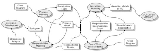 CIAM [15] is a methodology that guides the designer to create a conceptual specification of the aspects to be considered within a groupware system in order to architect the system and design the necessary interaction in this kind of groupware system. The different steps to be carried out to obtain the final user interface can be seen in Figure 6.