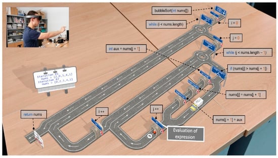 - Schez-Sobrino, S.; García, M.Á.; Lacave, C.; Molina, A.I.; Glez-Morcillo, C.; Vallejo, D.; Redondo, M.Á. A modern approach to supporting program visualization: From a 2D notation to 3D representations using augmented reality. Multimed. Tools Appl. 2020, 80, 543–574. [Google Scholar] [CrossRef]