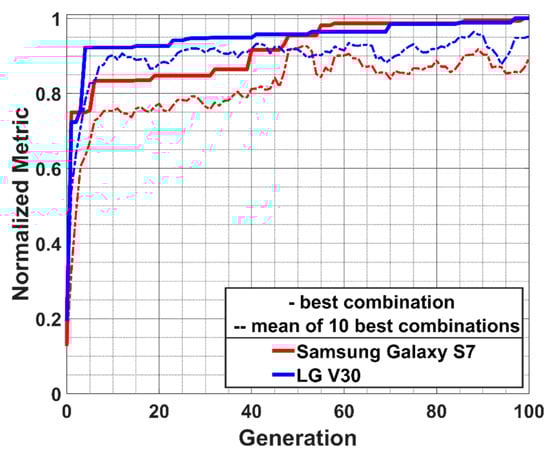 The genetic operator’s selection, recombination, and mutation create the next generation from the random starting parameter space (the starting population). This process is repeated until most parameter combinations converge or a maximum number of generations has been reached. To achieve progress in the optimization, selecting the best individuals of a generation is required in each optimization step based on a quality metric [].