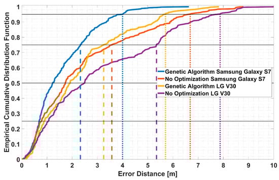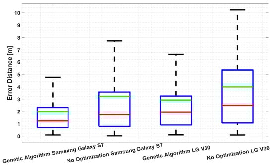 The convergence speed and the overall accuracy of the estimated position to represent the real position can be influenced by weighting the probability distributions. Instead of a knowledge-based approach, this work investigates the GA and compares it with other optimization strategies (Section 5) to achieve optimal weights and, thereby, a higher position accuracy.
