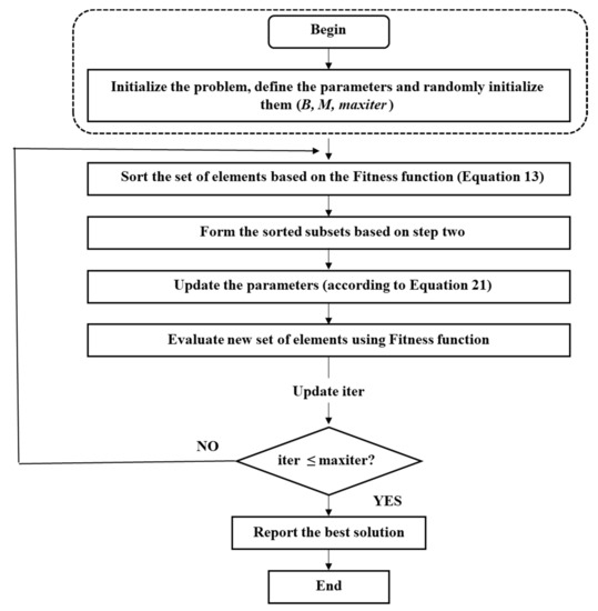 - Compute fitness function: The optimal solution is determined using fitness, which is known as minimization problem and hence solution generating the least Mean Square Error (MSE) is chosen as an optimal solution. Thus, the MSE is computed as,where, signifies expected output and represented predicted output, indicates count of input data, where .