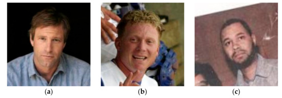 Figure 4 represents the image results of the LFW database. Figure 4a–c represent image results of a person acquired using the LFW database.