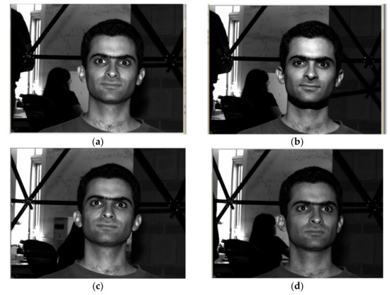 Figure 6 portrays the image results of the Extended Yale B database. Figure 6a,b represents illumination image-1 and image-2, respectively. Figure 6c,d represent pose image-1 and image-2, respectively.