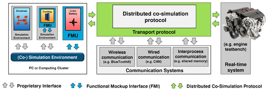 - Krammer, M.; Schuch, K.; Kater, C.; Alekeish, K.; Blochwitz, T.; Materne, S.; Soppa, A.; Benedikt, M. Standardized Integration of Real-Time and Non-Real-Time Systems: The Distributed Co-Simulation Protocol. In Proceedings of the 13th International Modelica Conference, Regensburg, Germany, 4–6 March 2019; Volume 157, pp. 87–96. [Google Scholar] [CrossRef]