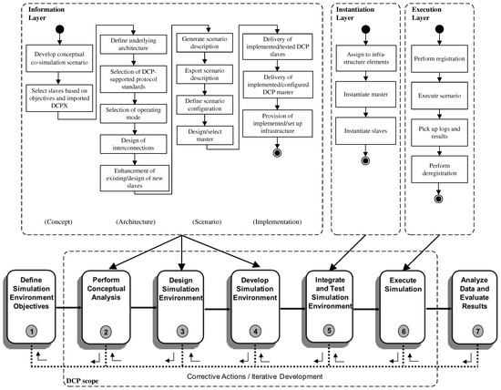 The following problem is stated. In industry, well-defined process definitions foster front-loading, as they prescribe sequences of development activities that can be tailored to purpose. The Distributed Co-Simulation Protocol (DCP) [4] is an application level communication protocol. It is designed to integrate models or real-time systems into simulation environments. Therefore its scope applies to the introduced front-loading challenge and effort reduction of MiL, SiL, and HiL simulation. The current DCP specification document covers the design of a simulation subsystem, called DCP slave, and its associated artifacts, like the DCP slave description file (DCPX). At this point in time, the DCP is missing a process description, that helps to determine its effective usage and to overcome the presented front-loading problem.