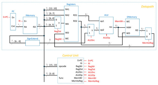 - Yıldız, A.; Ugurdag., H.F.; Aktemur, B.; İskender, D.; Gören, S. CPU design simplified. In Proceedings of the 2018 3rd International Conference on Computer Science and Engineering (UBMK), Sarajevo, Bosnia and Hercegovina, 20–23 September 2018; pp. 630–632. [Google Scholar] [CrossRef]